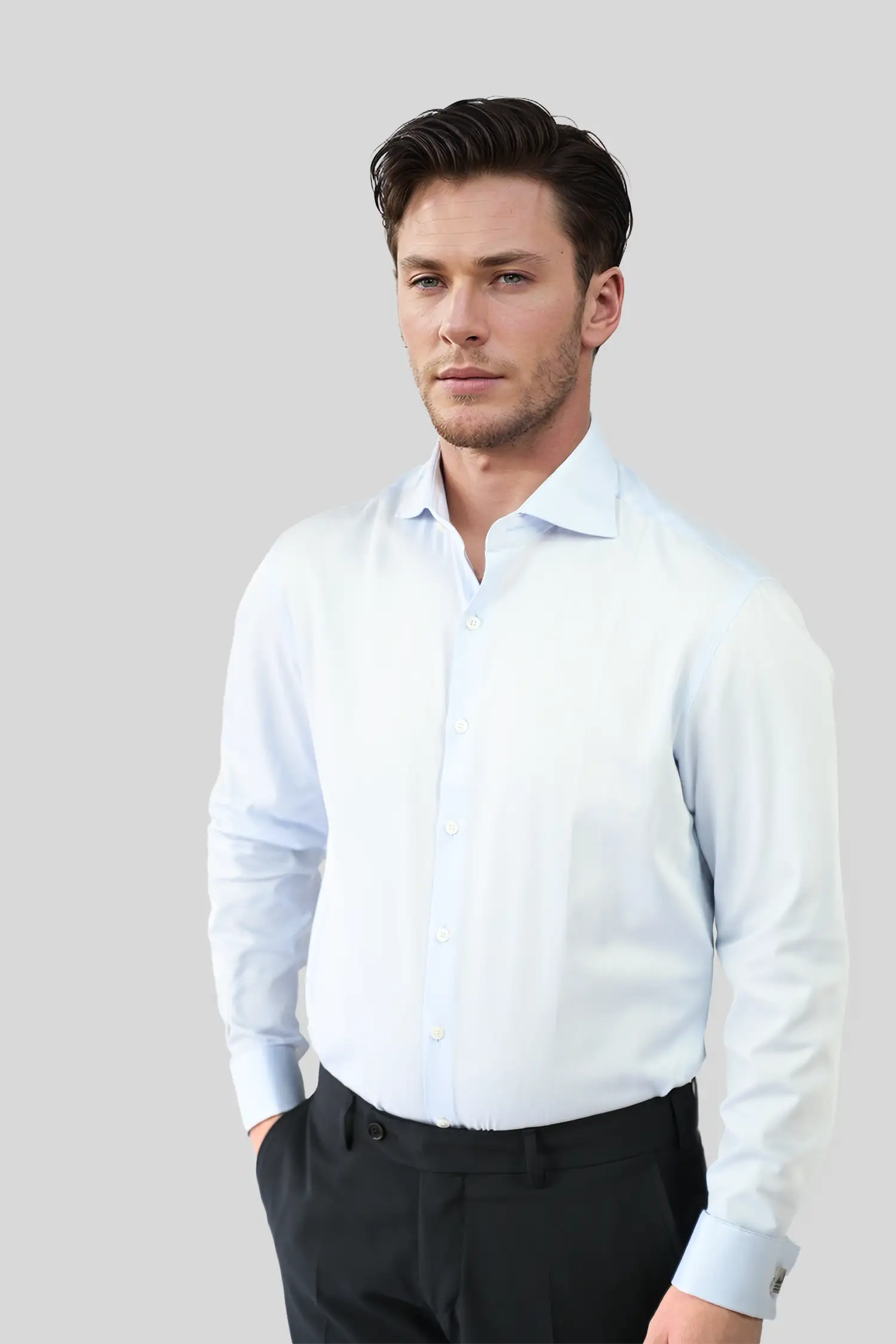 Der Hai-Kragen verleiht diesem Hemd eine markante und zugleich elegante Note, während das Twill-Gewebe für eine luxuriöse Haptik und einen edlen Look sorgt. Die Umschlagmanschetten geben diesem Hemd den letzten Schliff und unterstreichen seine hohe Qualität und Liebe zum Detail.