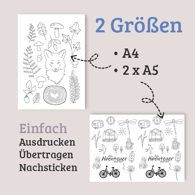 Die Motive sind als große Version auf A4 und als kleinere Version auf A5 enthalten. So kannst du dir deine passende Motivgröße aussuchen.