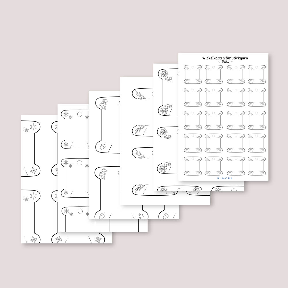 Bring mehr Ordnung in deine Stickprojekte mit dem Set aus Wickelkartenvorlagen und dem Stickplaner zum selbst ausdrucken.